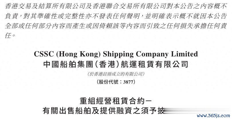近日,中国船舶集团(香港)航运租赁有限公司(中船租赁)发布须予披露交易公告,公司全资特殊目的公司作为卖方,与买方UHLFLASH等九家德国注册公司订立协议备忘录,拟出售九艘13000吨级重吊船舶,总代价为2.64亿美元。