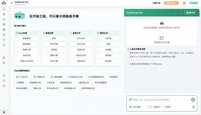 智能对话交互与多模态数据输入输出:用户无需学习函数公式可上传多模态数据文件,如PDF、Word、PPT、图片等,通过自然语言与数据进行交互。提供系统支持对话式完成数据清洗、运算、分析到图表生成的全过程,并支持抠图、制表、多种模板选择功能,可将最终结果一键导出为Excel或直接生成数据PPT。