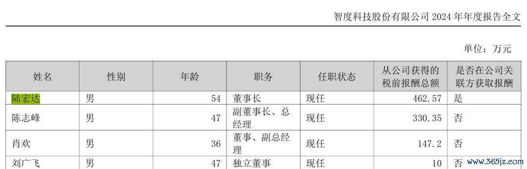 另据智度股份2024年年报,陆宏达自2020年5月起任智度股份董事长,其2024年从公司获得的税前报酬总额为462.57万元。